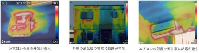 こうした中、結露診断士のカリキュラムでは、夏型結露を含む結露現象の基礎から、現場調査で役立つ診断手法まで幅広い内容を学ぶ。具体的には、赤外線サーモグラフィで結露箇所を可視化する技術や、分電盤からの外気流入、外壁通気層の異常、エアコンの低温による天井裏の結露などの対応も含む。