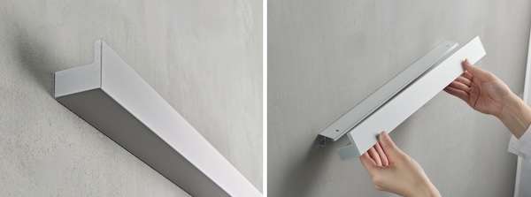 壁に穴をあけずに収納やディスプレイが可能なアルミ製の長押(なげし)を開発。 石膏釘で簡単に取り付けられ、賃貸住宅にも対応する。
