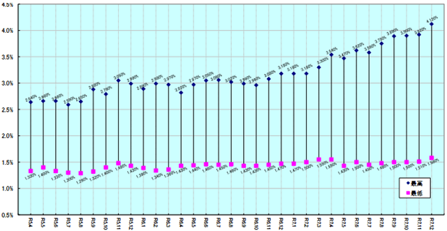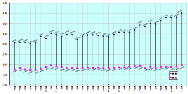 フラット35借入金利の推移(最低~最高)令和5年4月~