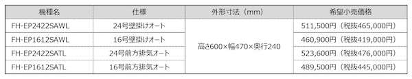 パロマ(名古屋市)は、ドレン排水専用縦管のない集合住宅に設置できる新型ガスふろ給湯器「BRIGHTS ドレンアップ」シリーズを発売した。