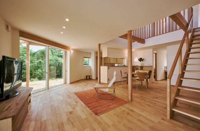 U邸のLDKの様子。壁と天井はどちらも漆喰塗料で仕上げている