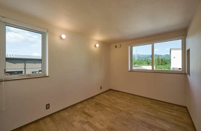 A. 室内側の窓枠の納まりは、壁断熱が充填断熱のみか付加断熱を施すかによって異なる。どちらもサッシは半外付け納まりで外壁側に設置するため、窓の奥行きが変わる