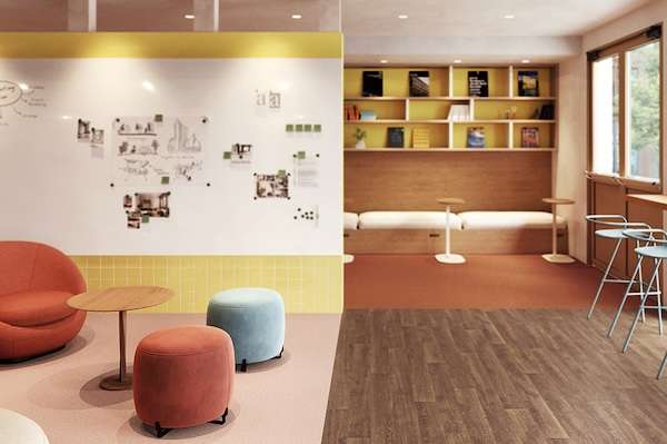 ⾮住宅向け不燃壁紙⾒本帳『FAITH(フェイス)』に収録されている自然の色彩を取り入れた人気壁紙コレクション「Naturescape(ネイチャースケープ)」とのコラボ床材を新発売。