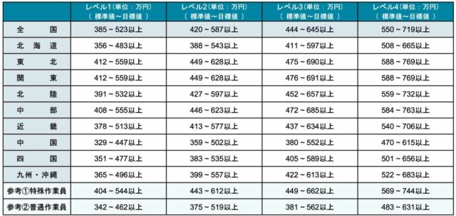 [表]地域ブロック別のレベル別年収額(全分野)