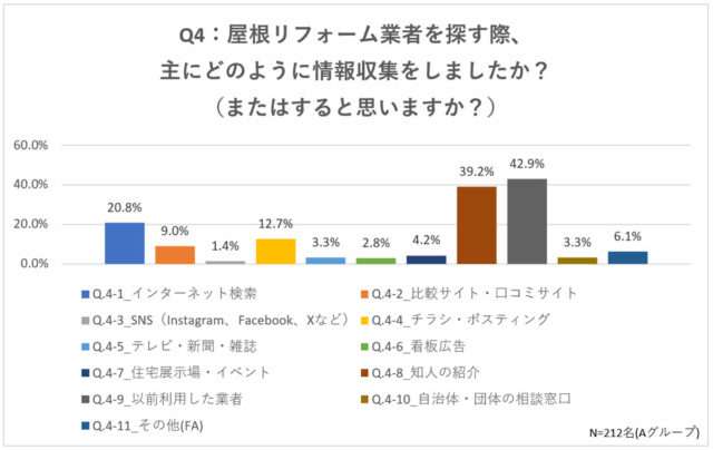 また、事業者を探す際の情報収集手段としては「以前利用した業者」が42.9%、「知人の紹介」が39.2%と、信頼性を重視する傾向がみられた。一方でインターネット検索も20.8%一定の割合を占める。