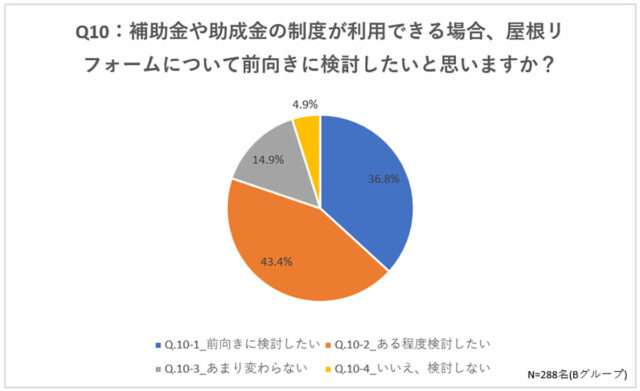 屋根・外壁工事店のマッチングサイト「やねいろは」「かべいろは」を運営する、いえいろは(岡山市)は、屋根リフォームに関する調査を実施した。屋根リフォーム未実施者の46.2%が補助・助成金制度を認知していなかったが、80.2%は制度の利用が可能なら「前向きに検討したい」と回答。公的な支援制度の認知不足が障壁となっている実態がうかがえた。
