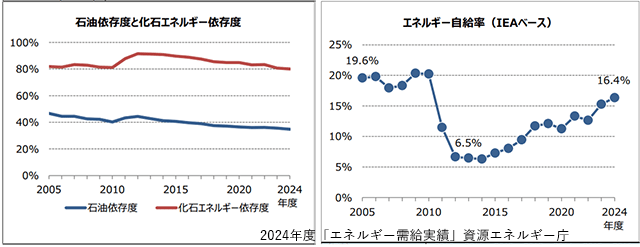 エネルギー供給の推移を見ると、「石油」によるものが減少傾向にあるのに比して、「再生可能エネルギー」が大きく増えている。これに伴い、石油をはじめとする「化石エネルギー依存度」は年々低下。東日本大震災により6.5%にまで落ち込んだ「エネルギー自給率」は、16.4%にまで回復した。