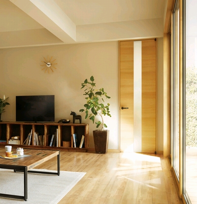 デザイン・カラー面では、天然木の木肌感を再現する新仕様「木目柄同調コート」を新たに採用。機能面では、室内ドアにピボットヒンジ、室内引き戸ではダブルクローズを標準採用した。