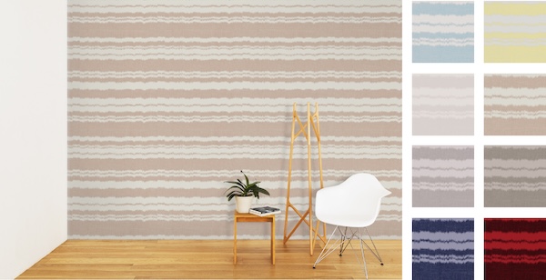 今回の壁紙は、デザインユニット「pole-pole」が、織元との対話や現地視察を通じてたて糸とよこ糸の繊細な表情をデフォルメし、「あべこべ」を意識してデザインした。