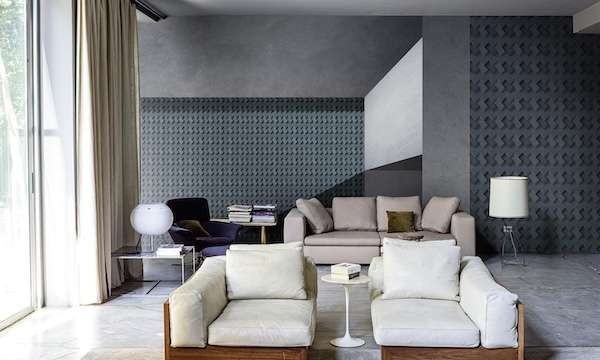 建築的な構成や、凹凸を感じる立体的かつモダンなパターンを中心にラインアップ。立体的なパターンは大小異なるサイズを用意したほか、壁面に合わせたサイズ変更にも対応する。