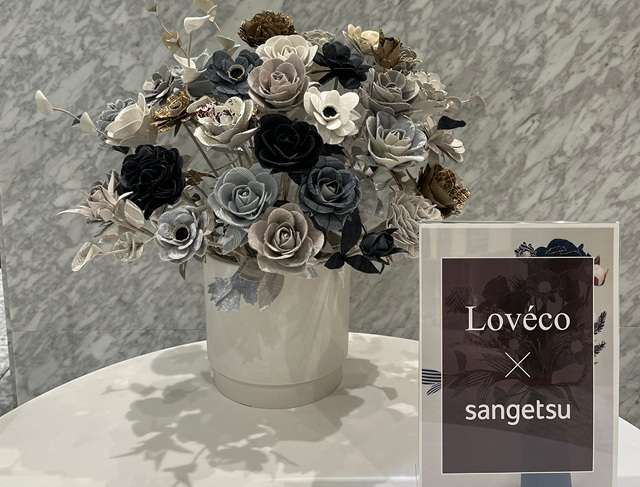 同プロジェクトは、同社カーテン、椅子生地、壁紙の廃番商品を、デザイン性と素材の質感をいかしたアートフラワーへアップサイクルするというもの。資源を有効活用し、メンテナンスフリーのインテリアアイテム「Lovēco × sangetsu」に再生する。