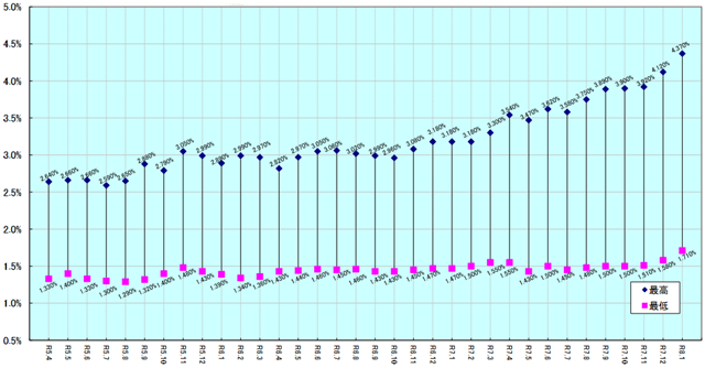 フラット35借入金利の推移(最低~最高)令和5年4月~
