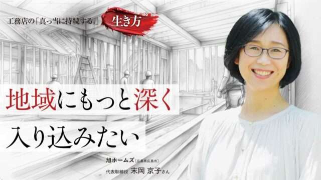 創業以来、どんなに時代が変わっても、どんなに市況が悪化しても、「お客様の人生に寄り添う」家づくりを貫いてきた旭ホームズ。社長の末岡京子さんは、「家は人生を豊かに、幸せに過ごすための一つの道具でありパーツ」と語り、単なる建築提案ではなく、家族の背景や将来設計まで踏まえた提案を重視する。相続や不動産の相談にも士業と連携して応えるなど、困りごとを総合的に解決する姿勢が顧客の信頼を支えてきた。「特別なことは何もしていない。当たり前のことを大切に、コツコツ積み重ねてきた結果、今がある」と振り返る。