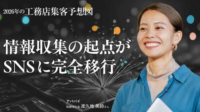 A. 2026年の集客環境は、検索エンジン中心の時代から、SNSを起点とした情報収集へと完全に移行するとみられる。InstagramやYouTubeは、住宅検討者が一次情報を得る主要なチャネルとなり、リフォーム領域でもSNS経由の反響が急増している。生活者は企業発信よりも、実際の施主の声やリアルな体験を重視する傾向が強まり、SNSでの「共感形成」が集客の前提条件になる。ホームページは“最初に見られる場所”から“最終確認の場”へ役割が変わり、信頼性を補完する機能がより重要になるだろう。