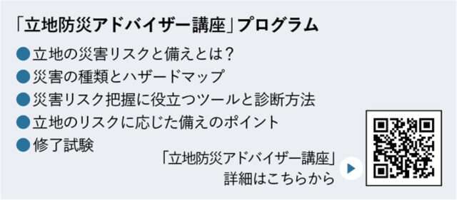横山さんは同講座を「現行法制度の穴になっている部分を学ぶ講座」と位置付け、地震と水害を対象に、土地と建物をトータルでリスクを考えながら“備え方”も含めたプログラムを用意したという。具体的には・・・