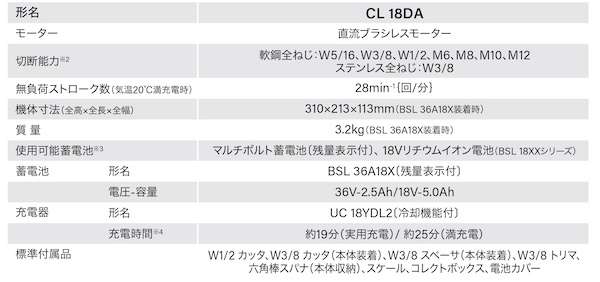 軟鋼W1/2の太径全ねじに対応するパワフルな切断能力と、1充電あたりの作業量の多さが特徴。