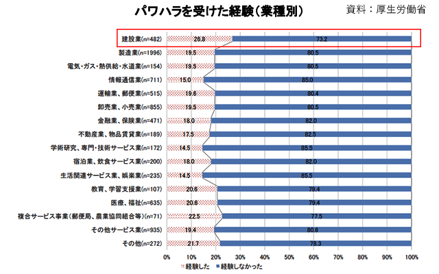 厚生労働省が2023年度に実施した「職場のハラスメントに関する実態調査報告書」(PDF)によると、パワハラを受けた経験は「建設業」が26.8%と最も高くなっている。ハラスメントへの対策は、貴重な人材である一人親方の流出防止や、企業の社会的評価を守るためにも不可欠な取り組みとなる。