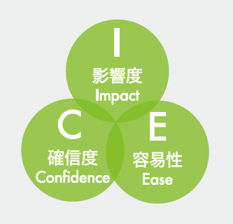 自社のプロモーション施策を「影響度(I)・確信度(C)・容易性(E)」で数値化し、施策の優先順位を明確にします。 ※ICEスコアとは、影響度・確信度・容易性の3つの軸で施策を整理し、「成果が出やすく、すぐ取り組めるもの」から優先順位を決める考え方です。 |