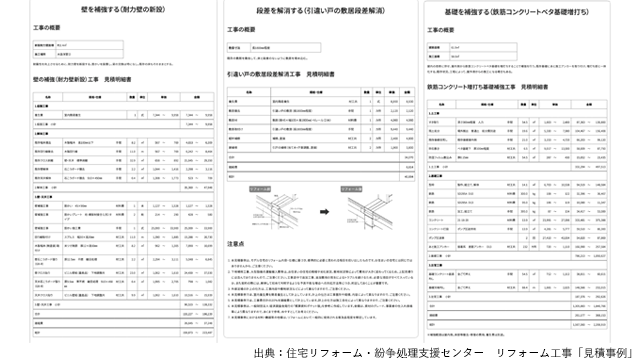 住宅リフォーム・紛争処理支援センター(住まいるダイヤル)は1月20日、同サイト内の「リフォーム工事『見積事例』」を更新した。同事例集は、一般消費者が自宅のリフォーム費用を検討する際の参考資料として作成したもので、今回の更新では経済調査会発行の「積算資料ポケット版リフォーム編2026」の最新単価情報が反映されている。