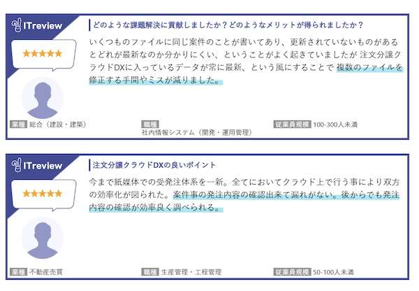 「ITreview」に寄せられた「注文分譲クラウドDX」のレビュー