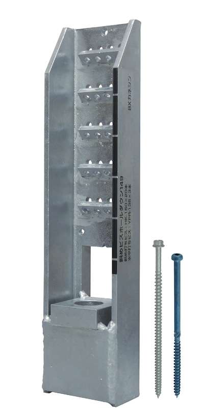 BXカネシン(東京都葛飾区)は、少ないビス本数で引張耐力149kNを実現するホールダウン金物「斜めビスホールダウン149」を発売した。