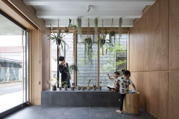 【設計】窓廻りに木質感を 樹脂サッシの彫りを深めた上で全開口に