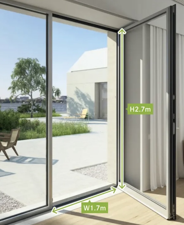 重量のあるトリプルガラスでも、ドレーキップで最大160kgまでの障子重量をサポートし、床から天井まで届く大開口を実現する。