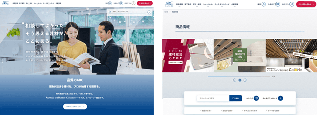 トップページを刷新し、同社の理念や取り組みを紹介する「ABCのこだわり」を追加。初めて同社を知る顧客や、取り引きのある顧客が安心して商品を選べるようにすることで、企業の信頼性向上を図る。また「商品情報ページ」を新設し、施設・部位・商品などさまざまなカテゴリから商品を検索可能とした。