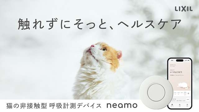 LIXIL(東京都品川区)は2月2日、猫の体に触れることなく安静時の呼吸数を計測できるIoTデバイス「neamo(ニアモ)」を開発し、2月9日から応援購入サービス「Makuake(マクアケ)」にてプロジェクトを開始すると発表した。期間は5月1日まで。