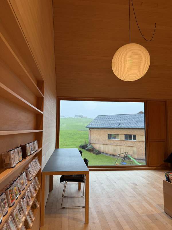 | 自治体センター内の図書館と音楽団の練習室。練習室は市民サークルの参加者がDIYで内装を施した。職人でなくても住民の日常には手しごとが根付いていることがわかる | |