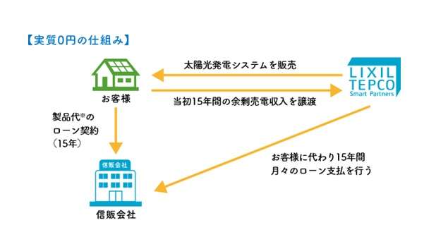 利用者が15年間に得る余剰電力の売電収入をLTSP社が受け取ることで、太陽光発電システムの製品代の割賦負担を相殺する仕組み。また、発電した電気は昼間に0円で使い放題となり、毎月の電気代削減にもつながる。