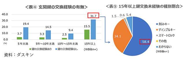 交換経験の有無(左)と未交換者の鍵種別