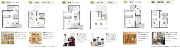 ファミリー層、1人親世帯、DINKS、自宅で教室を開きたい人など多様なライフスタイルに対応する3プラン(2部屋プラン、1部屋+フリースペースプラン、3部屋プラン)をラインアップ。内装は、ナチュラル、グレージュ、グレイ、ブラックの4テイストから選ぶことができる。