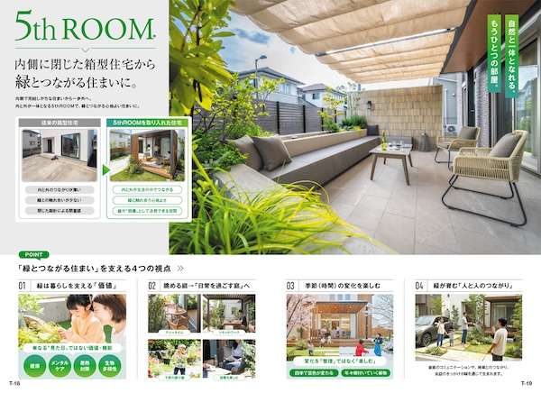 テラスは、内と外をつなぐ空間づくりに役立つ折戸「フラップスクリーン」、引戸「スライドスクリーン」を用意した。