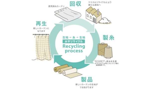 回収スキームと素材供給などで協力関係にあった両社は、環境規制の強まりや廃棄物削減の要請を背景に、より踏み込んだ資源循環の仕組みづくりが急務と判断。今回、使用済みカーテンや販売終了品の余剰在庫を回収し、ケミカルリサイクルによってポリエステル原料に再資源化し、新商品として再び市場に戻す循環ルートを構築した。