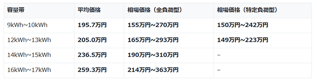 太陽光発電と蓄電池の見積もりサイトを運営するソーラーパートナーズ(東京都新宿区)が2月11日に公表した「家庭用蓄電池の相場価格調査結果」によると、2025年に同社の運営サイトを通じて最も多く契約された家庭用蓄電池は12kWh台の蓄電池だった。容量の平均は12.25kWhで、価格平均は蓄電池本体と工事代を合わせて税込210.1万円となった。