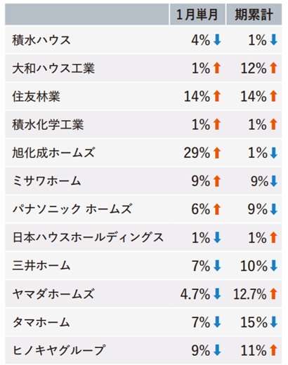 12月ハウスメーカー受注、4社が2ケタ増 減少は4社