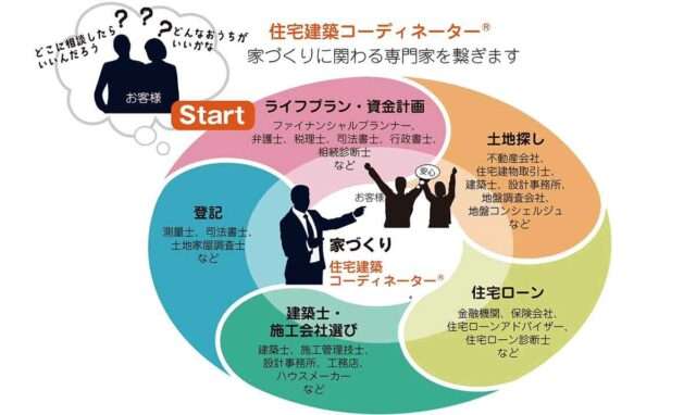 住宅建築コーディネーター協会は、住生活基本法(2006年)を背景に、住宅建築時に生じる情報格差や意思疎通の課題を解決するため、2011年に設立された。同協会が認定する住宅建築コーディネーターは、消費者と供給者の間に立つ中立的な相談員として、住宅購入時のトラブルを未然に防ぐ役割を担う。現在約3000人の有資格者のうち2000人が実際に現場で活躍している。