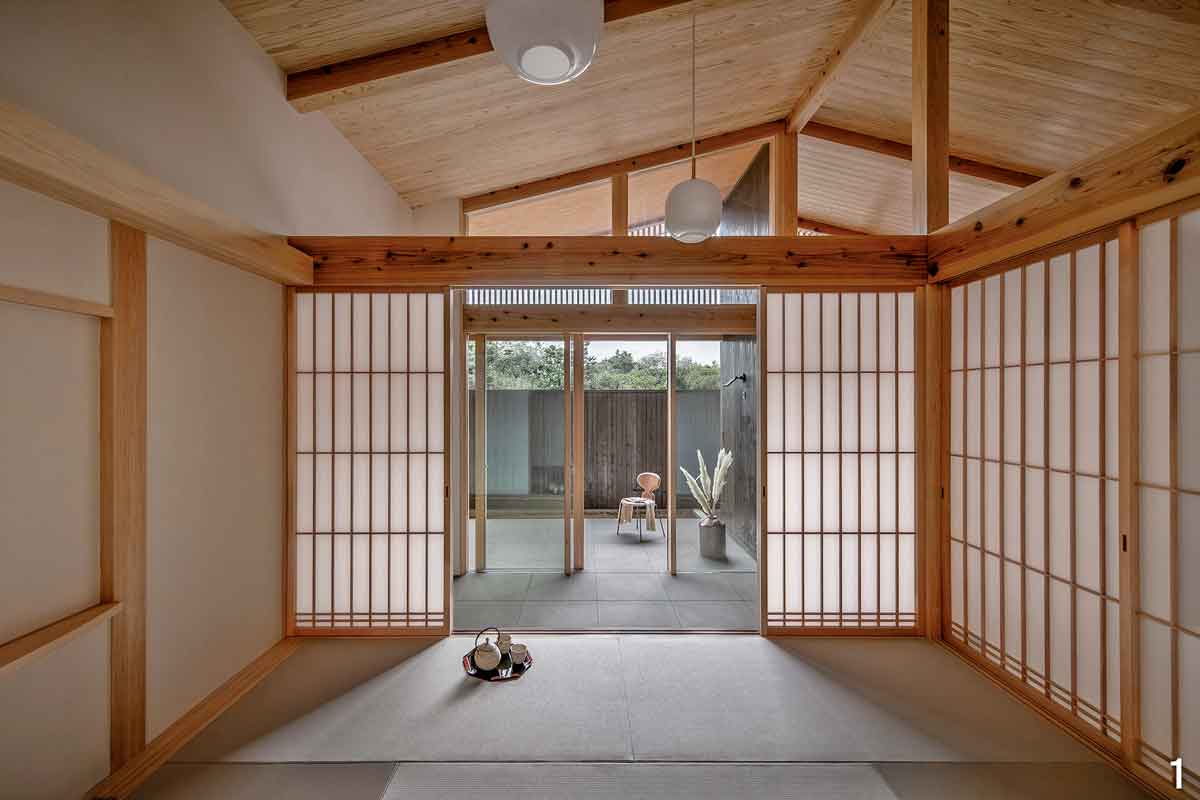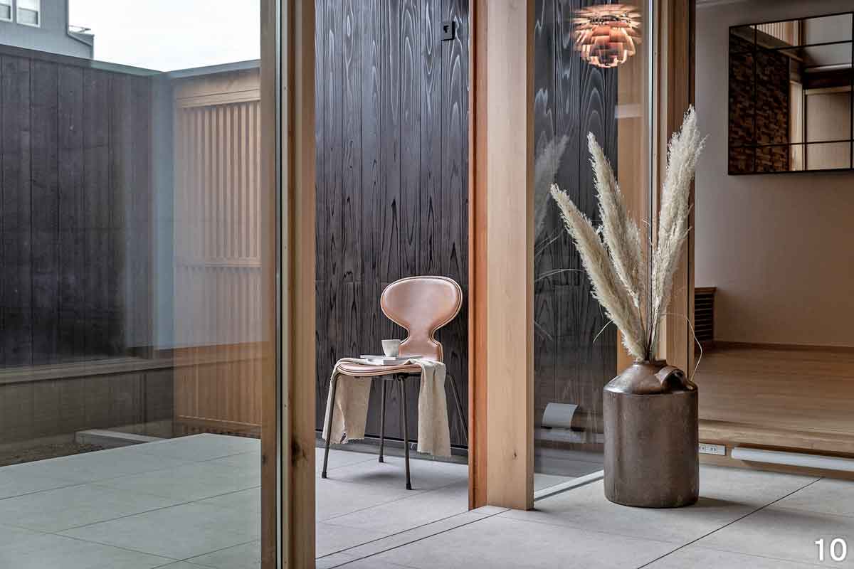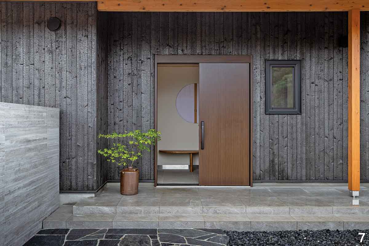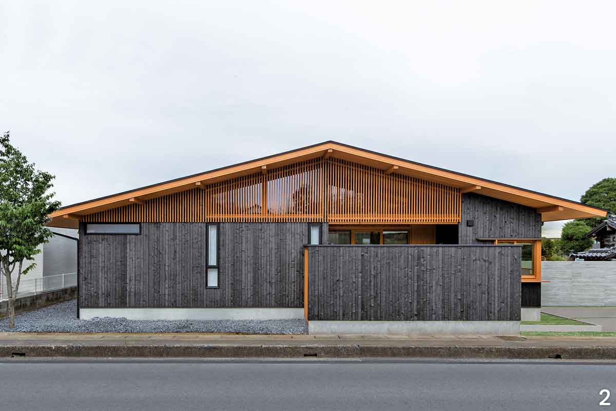 焼杉の外壁と格子を組み合わせた平屋―蓮見工務店