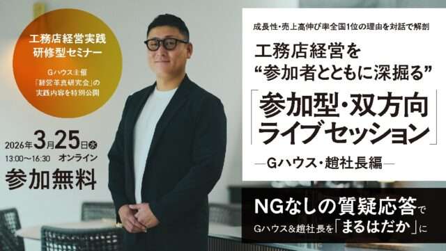一方通行の成功事例紹介ではなく、対話そのものを学びの価値とする参加型セミナーです。工務店経営を次のステージへ進めるためのヒントを、ぜひこの場で掴んでください。