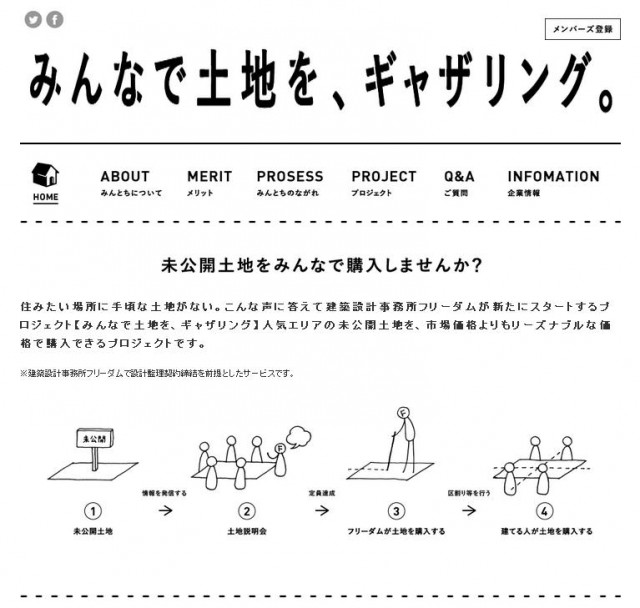 建築設計事務所フリーダム(兵庫県神戸市)は6月11日、人気エリアの未公開土地を早期に共同購入できるシステム「みんとち~みんなで土地を、ギャザリング~」サービスの提供を開始した。