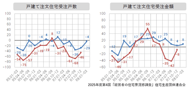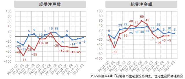 住宅生産団体連合会(住団連、東京都千代田区)は2月26日、ハウスメーカーなど14社を対象とした2025年度第4回「経営者の住宅景況感調査」報告を公表した。