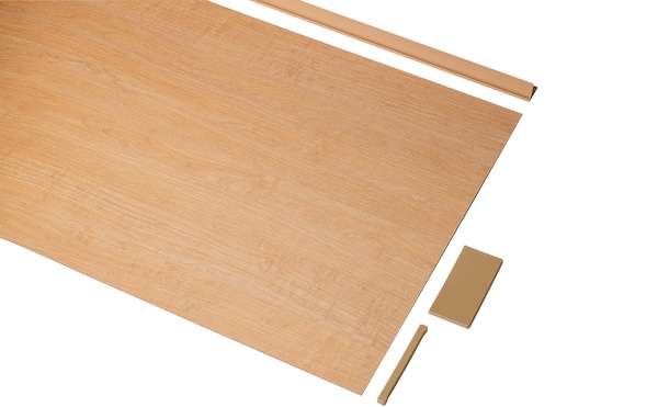 展開形状になっているため平面での加工がしやすく、材質がやわらかいため天板に追従させながら容易に接着することができる。