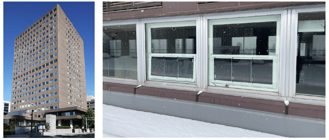 (左から)札幌市本庁舎、BIPV内窓の設置状況