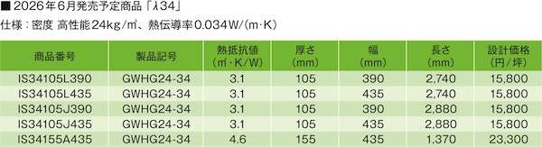 24K品を進化させ、熱伝導率を現行のλ35からλ34に変更する。