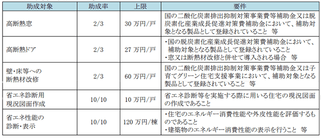 2026年度の事業では既存の賃貸住宅を対象に、不動産広告への性能表示の掲載や断熱性能向上のための改修を実施する場合に、その経費を助成する。助成率は、性能診断は経費の全額、断熱改修は3分の2となっている。