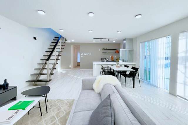 販売物件は、24畳の開放的なリビングを中心に、家事動線や収納計画を整理した実用性の高い間取りが特徴。家具や外構、インテリアブランドの「クラッシュゲート」のアイテムなどもそのまま引き渡し、完成度の高い住空間を見学でき、契約後はすぐに入居できる。3月中は見学会を毎週土日祝に開催する。