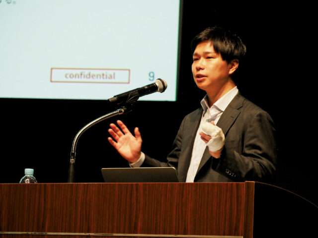現状と今後の方針を発表する取締役CSO兼営業本部長・鈴木潤一さん