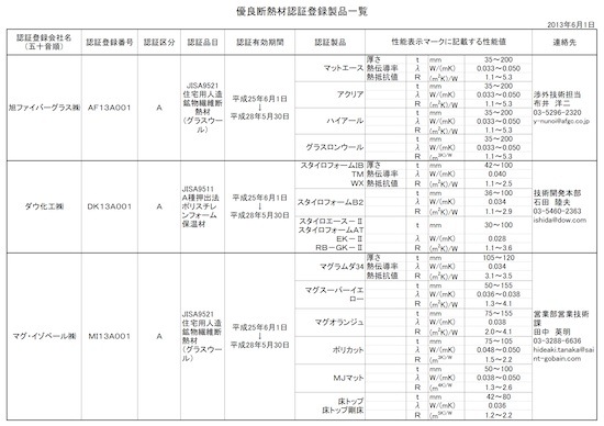 5月9日に第1回認証審査委員会を開催。その結果、旭ファイバーグラス、ダウ化工、マグ・イゾベールの3件の申請(全13製品)が認証された。認証を受けた認証登録製品は、会社名、登録番号、製品名、性能値、メーカー別担当者への連絡先といった8項目の製品情報が公開される。