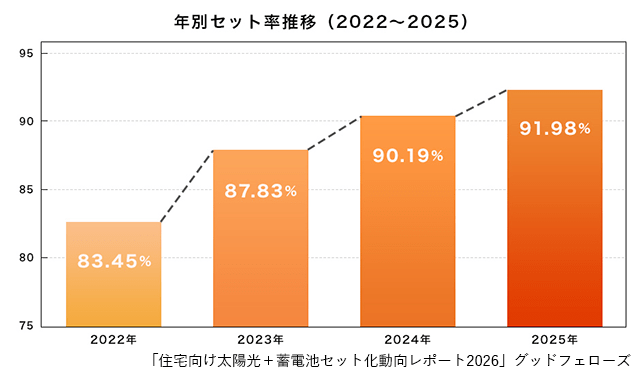 セット化が進む背景については、物価上昇による家計への負担増加に加え、電気料金単価の上昇や燃料費調整額の変動、再エネ賦課金水準の変動などを挙げた。さらに今後、中東情勢の悪化に伴う燃料高騰により電気料金の値上げが予想され、セットでの導入が一段と進む見込みだ。